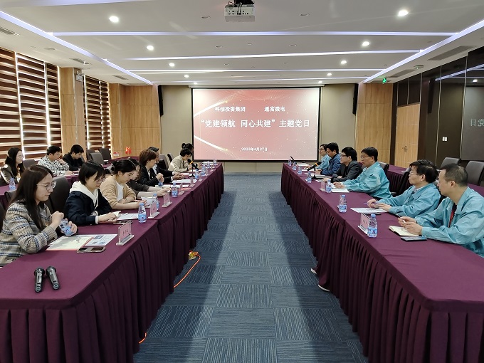 4月27日,南通科创投资集团南通新源投资发展有限公司党支部、通富微电行政党支部共同举办了“党建领航 同心共建”主题党日活动。通富微电党委副书记石锋、公共事务办公室总监助理吴华、南通科创投资集团党委副书记朱军出席活动。双方党支部党员代表等约30人参加活动。