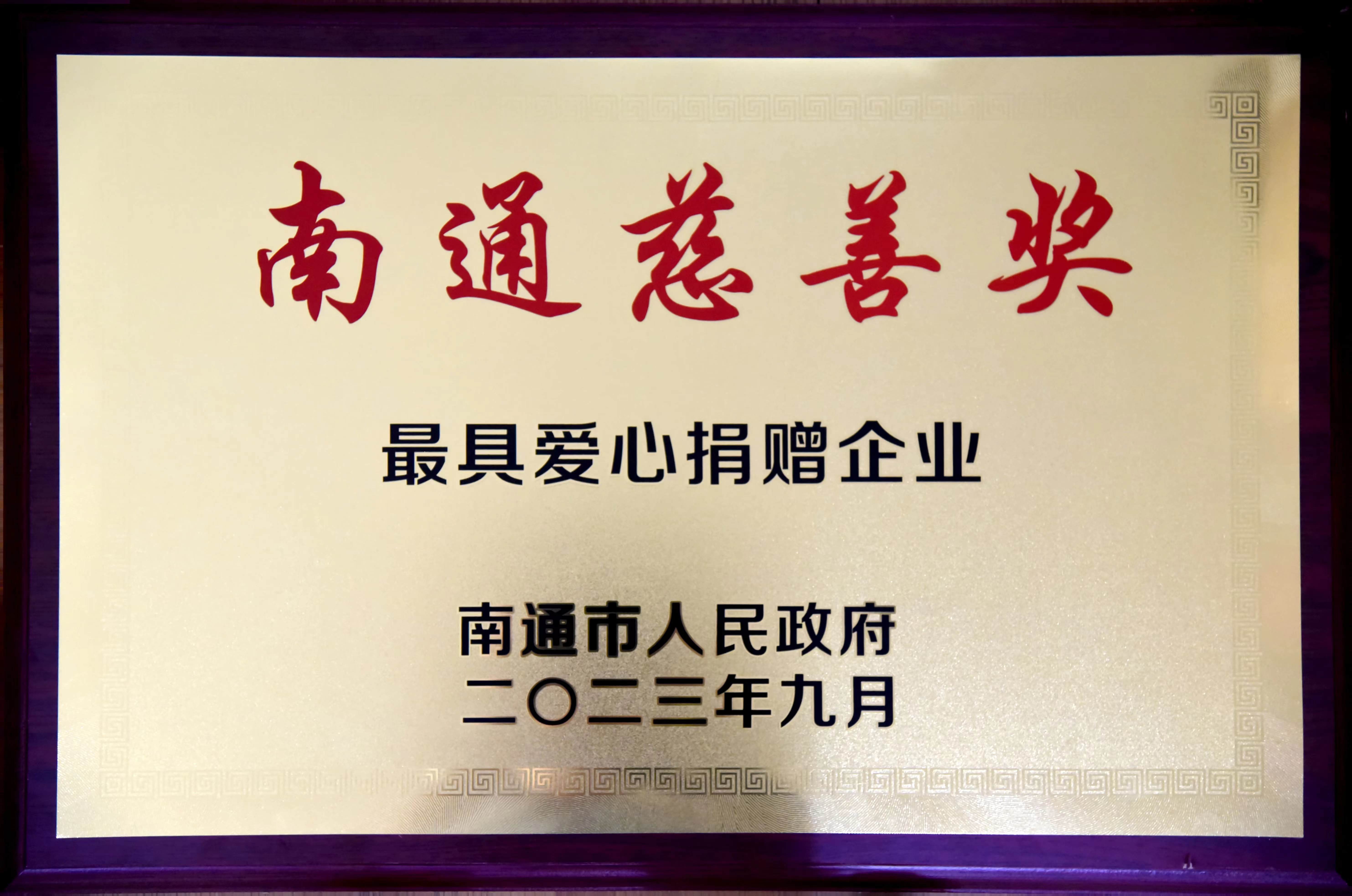 太阳集团0638登录网站荣获“南通市最具爱心捐赠企业”荣誉称号,总裁石磊荣获“最具爱心捐赠个人”荣誉称号。