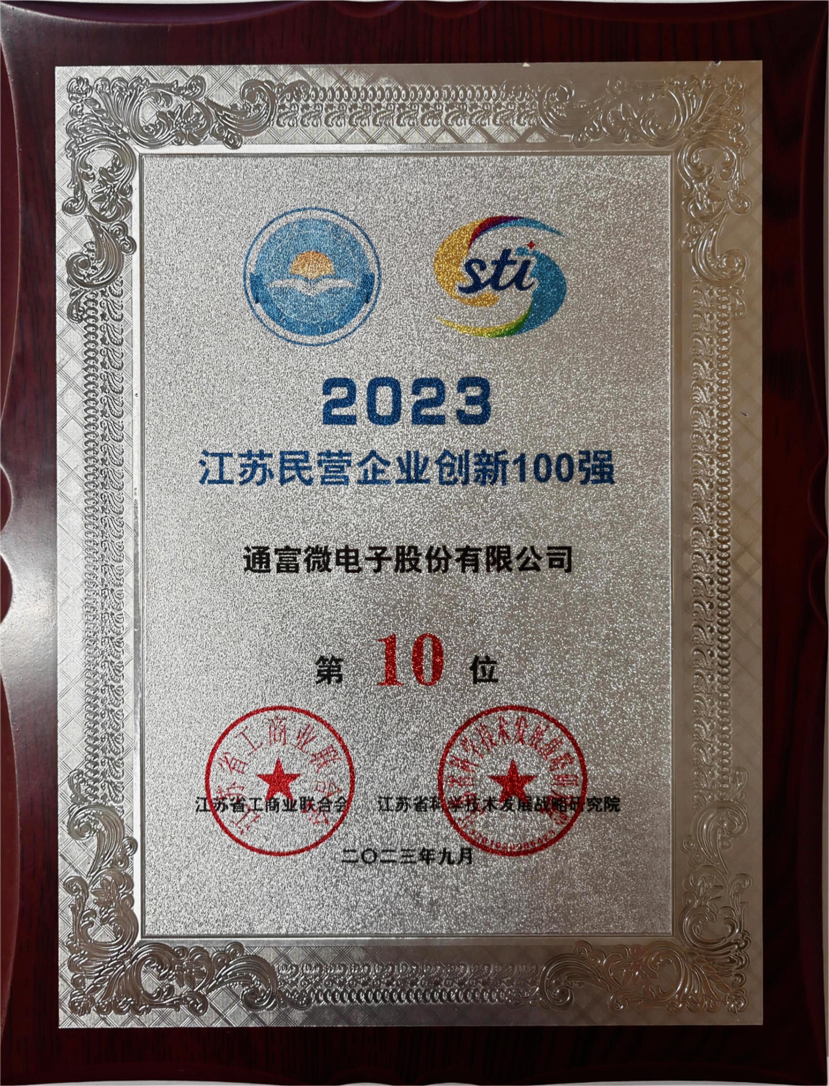 通富微电入选“2023民营企业创新100强”名单,位列第10位;